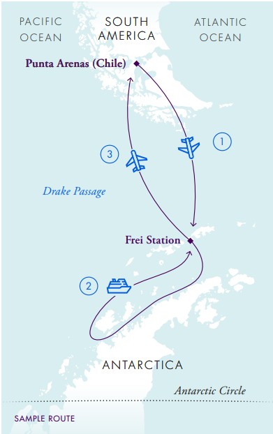 A two-hour flight carries travelers from Punta Arenas, the Chilean gateway to Patagonia, straight to Antarctica, where the expedition vessel awaits. No turbulent crossing. No seasickness. Just a swift arrival and immediate immersion in the Antarctic experience.